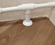 Способ монтажа: Обвод трубы одевается в обхват трубы, защелкивается и прижимается к полу. Если у вас трубы близко к стене, вы можете повернуть розетту узким краем к стене, и она у вас встанет на место.
