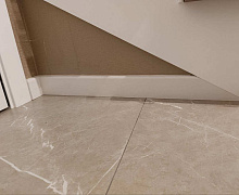 МДФ плинтус от компании "Лука". Перекроет зазор между стеной и полом до 16 мм.
